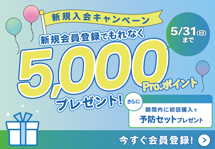 ※会員申請完了後、弊社審査をしたうえで5,000Pro.ポイント付与。