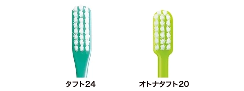タフト24のヘッドと柄を小さめに改良したのが、『オトナタフト20』。お口が小さい女性や思春期のお子さまなど、一般的なサイズの歯ブラシでは大きくてケアしにくい方にオススメです。 「小さな口でも奥まで届く」「握った感じがちょうどよく使いやすい」 根強い人気で、年々ファンが増えています。