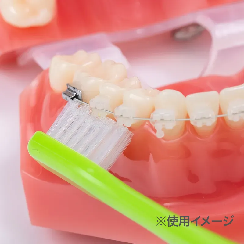複雑な部位でも自然な角度で磨ける矯正用の山型歯ブラシ。ブラケットまわりも毛先がスムーズに届き、プラークをしっかり取り除くことができます。ビビッドなカラーが、患者さんにも歯科衛生士さんにも人気です。 矯正治療をこれから始める方、ブラケットまわりにプラークがたまりがちな方、矯正治療にストレスを感じ始めている方にオススメください。