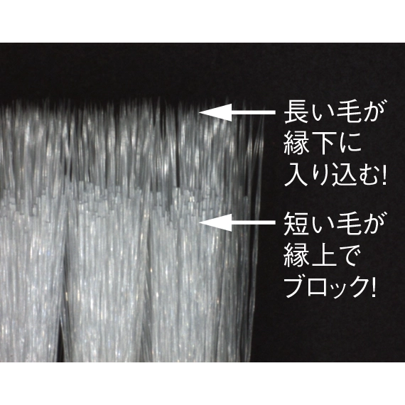 毛に“ねじれ”が施されているため、細いのにコシの強さが抜群です。しっかりしなって縁下の汚れをかき出します。
