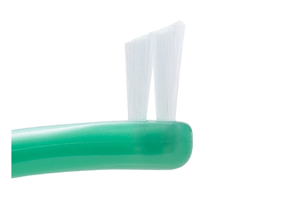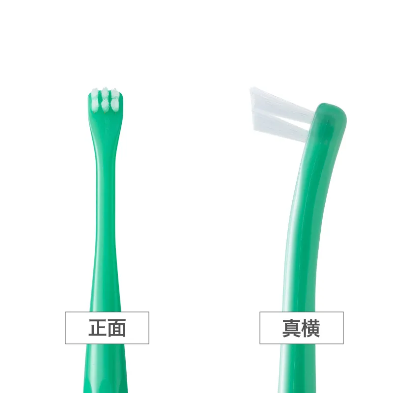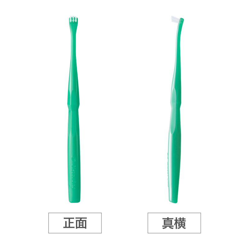 臼歯部の根元を確実にとらえる、段差がついた二列植毛。左右に振るよう磨くことで、ラクにプラークを除去できます。