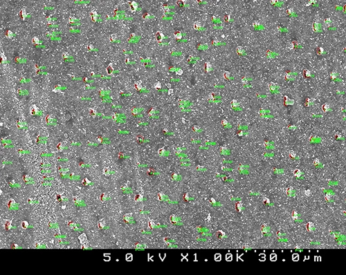 ■アパシールド処理面(面積:17877pix)開孔部を表す赤丸が、アパシールドの処理によって減少