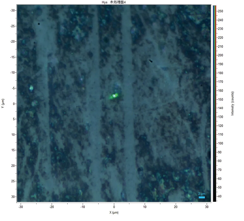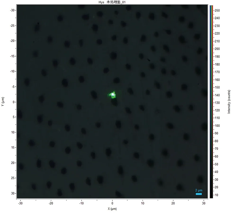 ■象牙細管開孔象牙質面黒丸で示した緑の部位をレーザラマン顕微鏡で解析