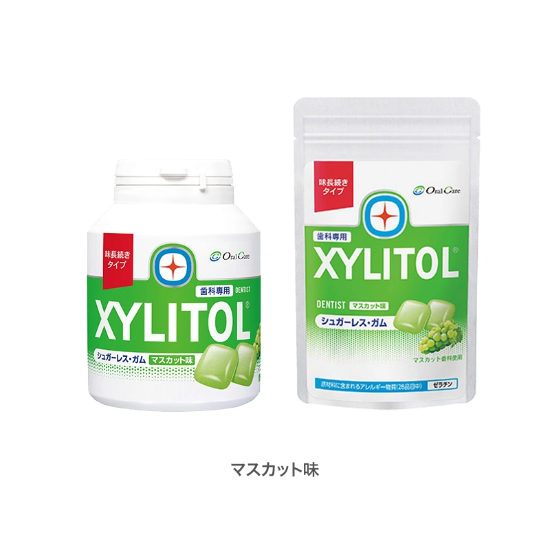 う蝕の原因にならない甘味料「キシリトール」を99.9%配合。歯科専用として、いつでもどこでも安心して噛み続けられます。