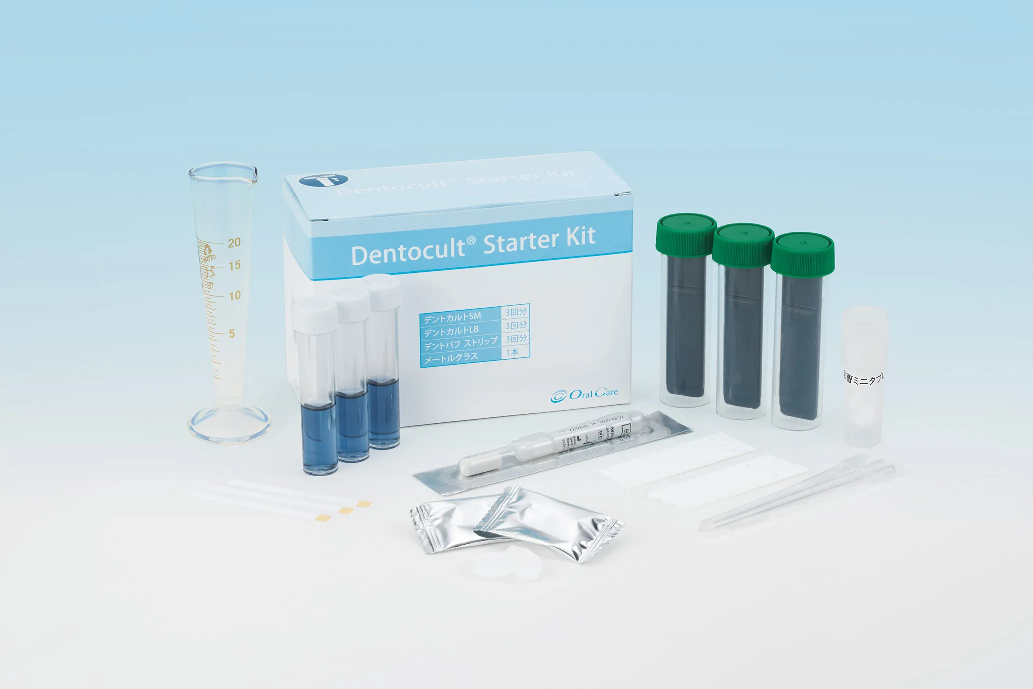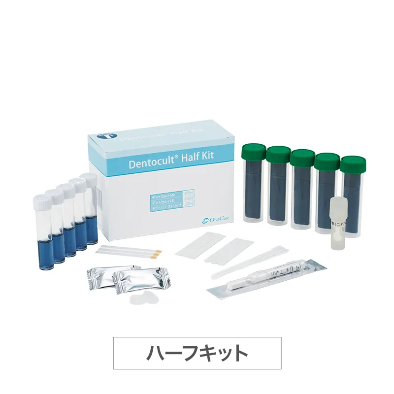 デントカルトSM、LB、デントバフ ストリップの3検査を3症例分で1パックに。メートルグラス、改訂版食生活アンケート(10部)も付いて、初めての導入に最適です。