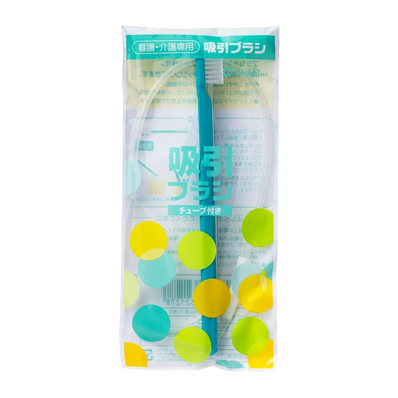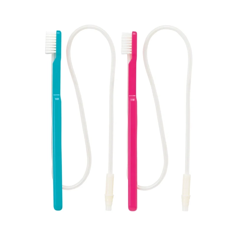 吸引チューブがついた歯ブラシ。ブラッシング中の水分や汚れを吸引しながら、安全に口腔ケアが行なえます。コシのあるソフトな毛が、やさしくもしっかりとプラークを除去。チューブがグリップ内に収納されているため、操作を邪魔しません。 誤嚥の心配がある方、飲み込む力が下がっている方、歯が残っている方のケアをサポートします。 ※使用には吸引機が必要です。