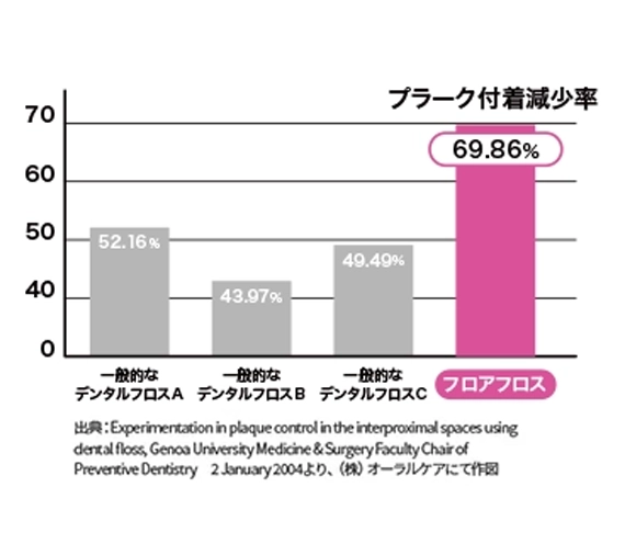 歯肉の中に潜むプラークをしっかり落として健康な歯肉を保つ! 『フロアフロス』は、そのために生まれたデンタルフロスです。フワッと広がる384本の繊維が歯肉を傷つけることなく、歯肉縁下のプラークを“ゴッソリ”除去します。