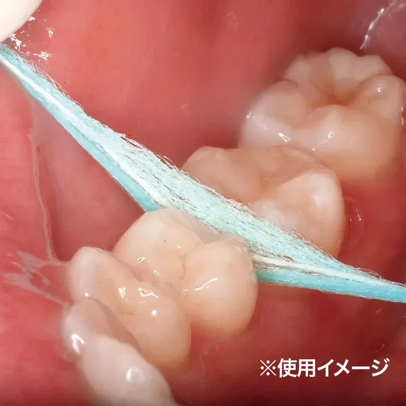 初心者でも使いやすいよう、フロアフロスと比べてワックス量は多め。最も歯周病になりやすい大臼歯の隣接面にもスルッと通せます。
