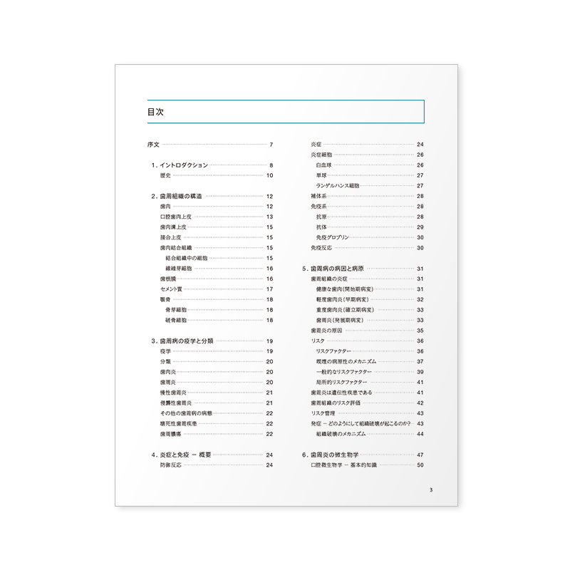 【内容】■イントロダクション■歯周組織の構造■歯周病の疫学と分類■炎症と免疫―概要■歯周病の原因と病原■歯周炎の微生物学■歯周炎と全身疾患■臨床記録と診断■歯周病の予防と治療■歯周組織再生■口臭症―不快と感じる呼気■エビデンスに基づいたペリオドントロジー■歯周炎とインプラント周囲炎の治療についてのナショナルガイドライン■リスクのある患者への予防的抗菌薬投与■インプラント