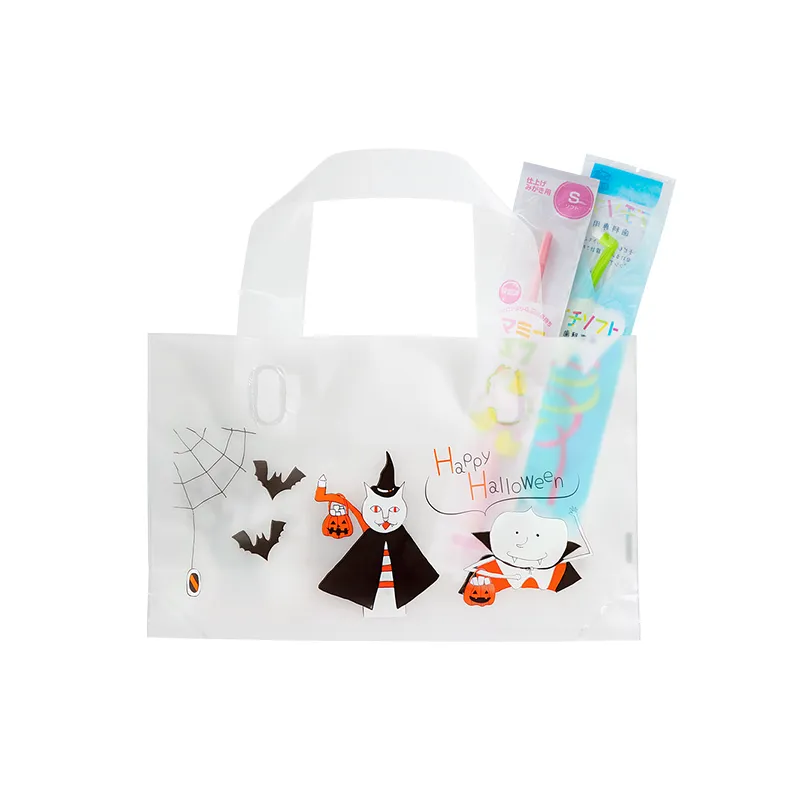 表と裏にかわいいイラストが入った、ハロウィン仕様のバッグです。歯ブラシなどのセルフケアグッズやプレゼントなどを入れてお渡しください。