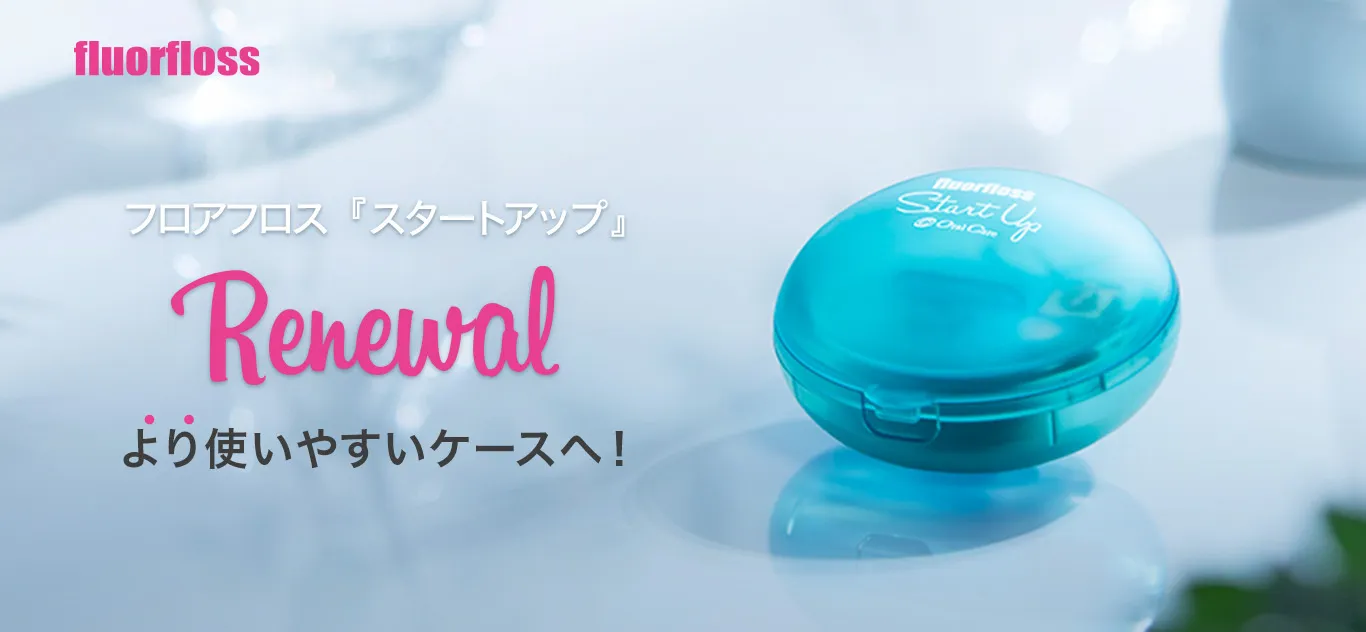 ケースがさらに使いやすく! フロアフロス『スタートアップ』リニューアル 2026/02/05 このたび、フロアフロス『スタートアップ』がリニューアルしました! 新しくなったのは「ケース」。より使いやすさを追求した形状や仕様に進化しています。 この機会にぜひ多くの患者さんへご提案ください。 中蓋:カチッとはまるロック式で外れにくい カッター:しっかり安定して糸を切りやすい カラー&デザイン:性別・年齢問わず手に取りやすい ご購入はこちら